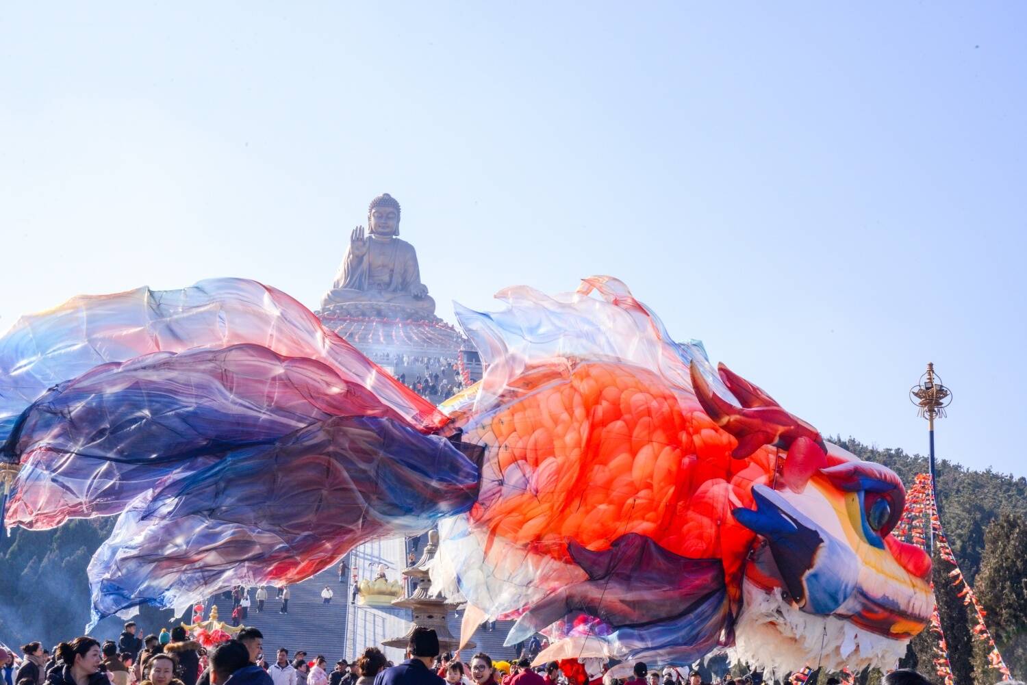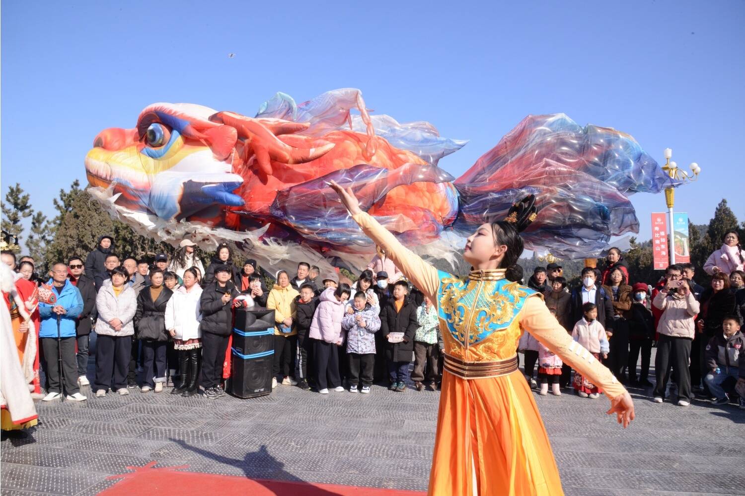 独占鳌头与国潮鱼龙舞共同登场,20米飞天鳌鱼栩栩如生,引得游客们阵阵喝彩。大家纷纷参与其中,感受传统文化的独特魅力,欢声笑语回荡在每一个角落。