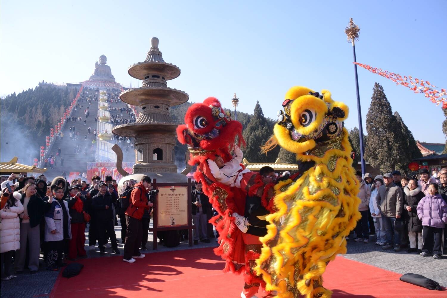撞钟祈福的钟声悠扬回荡,敲响了新一年的希望与憧憬,将心中的美好期许传递到远方,让每一位参与者都沉浸在庄重而神圣的氛围中。