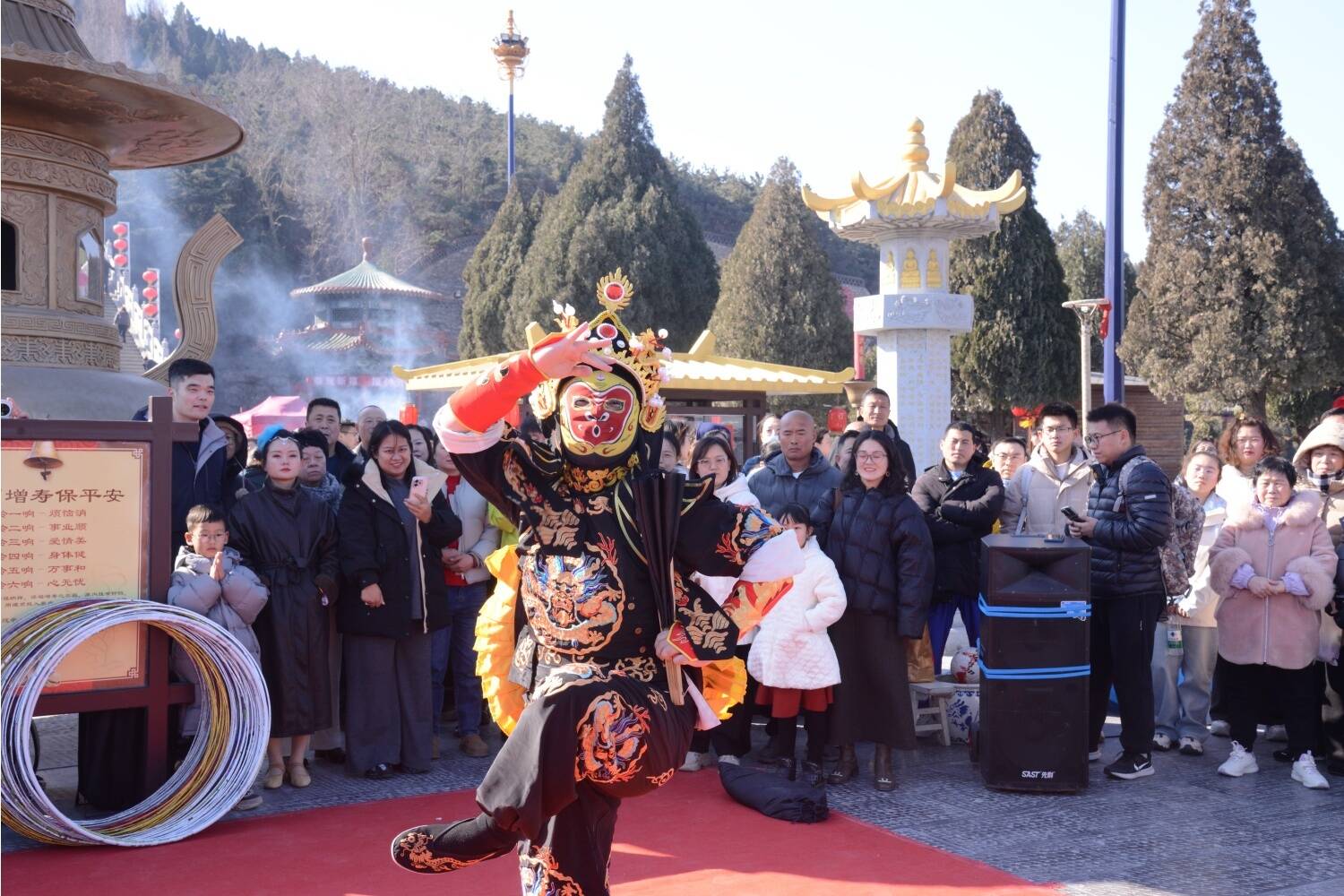 空灵鼓表演宛如天籁之音,大唐不倒翁身姿轻盈、翩翩起舞,西游记扭秧歌引得游客们捧腹大笑。20+活动密集开演,现场成了一片欢乐的海洋。