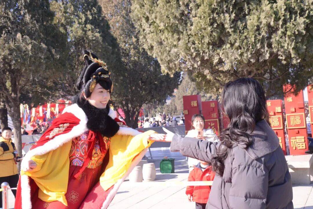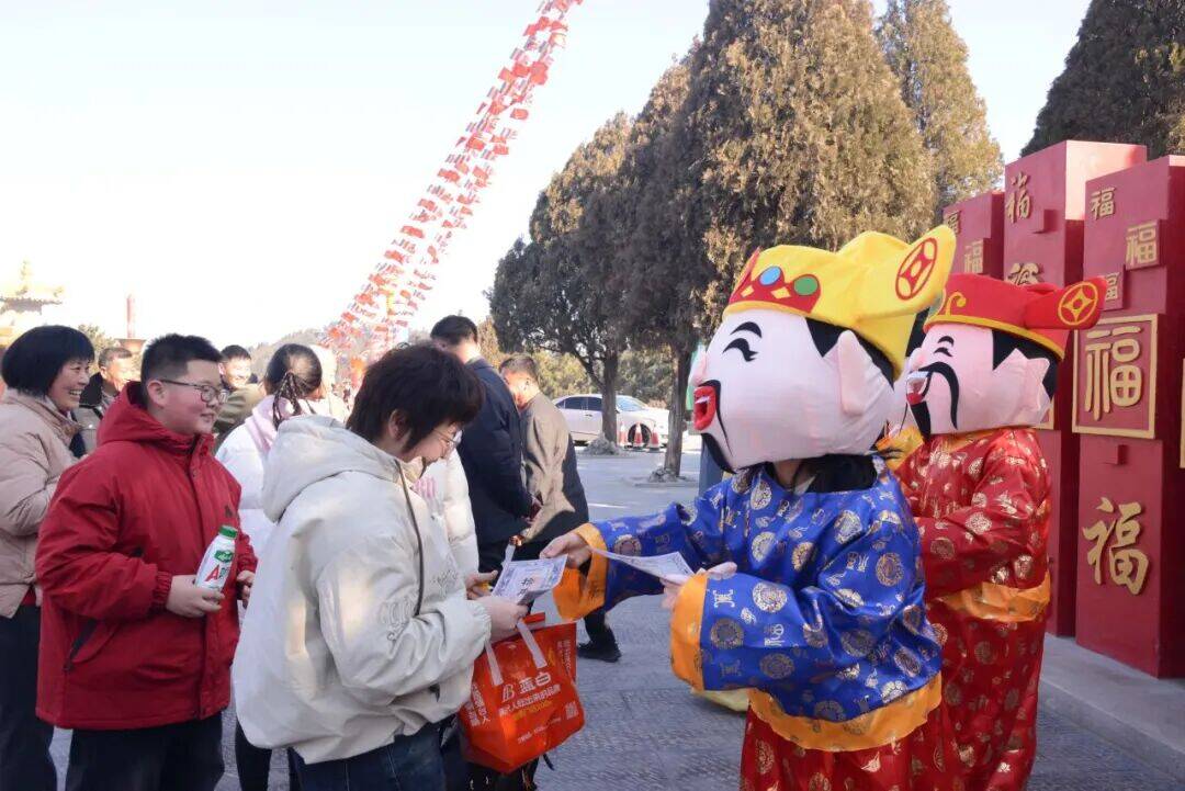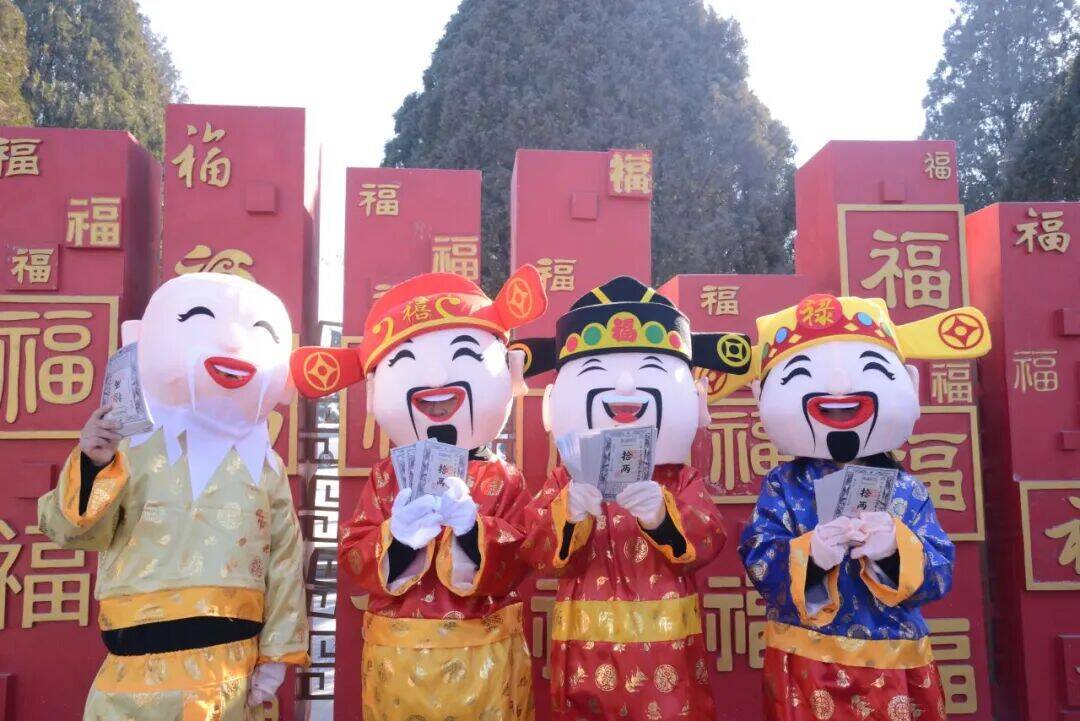 还有福神巡春,福禄寿喜财玩偶迈着欢快的步伐穿梭在人群中,与游客们亲密互动,为大家送上新春的祝福,所到之处一片欢声笑语。