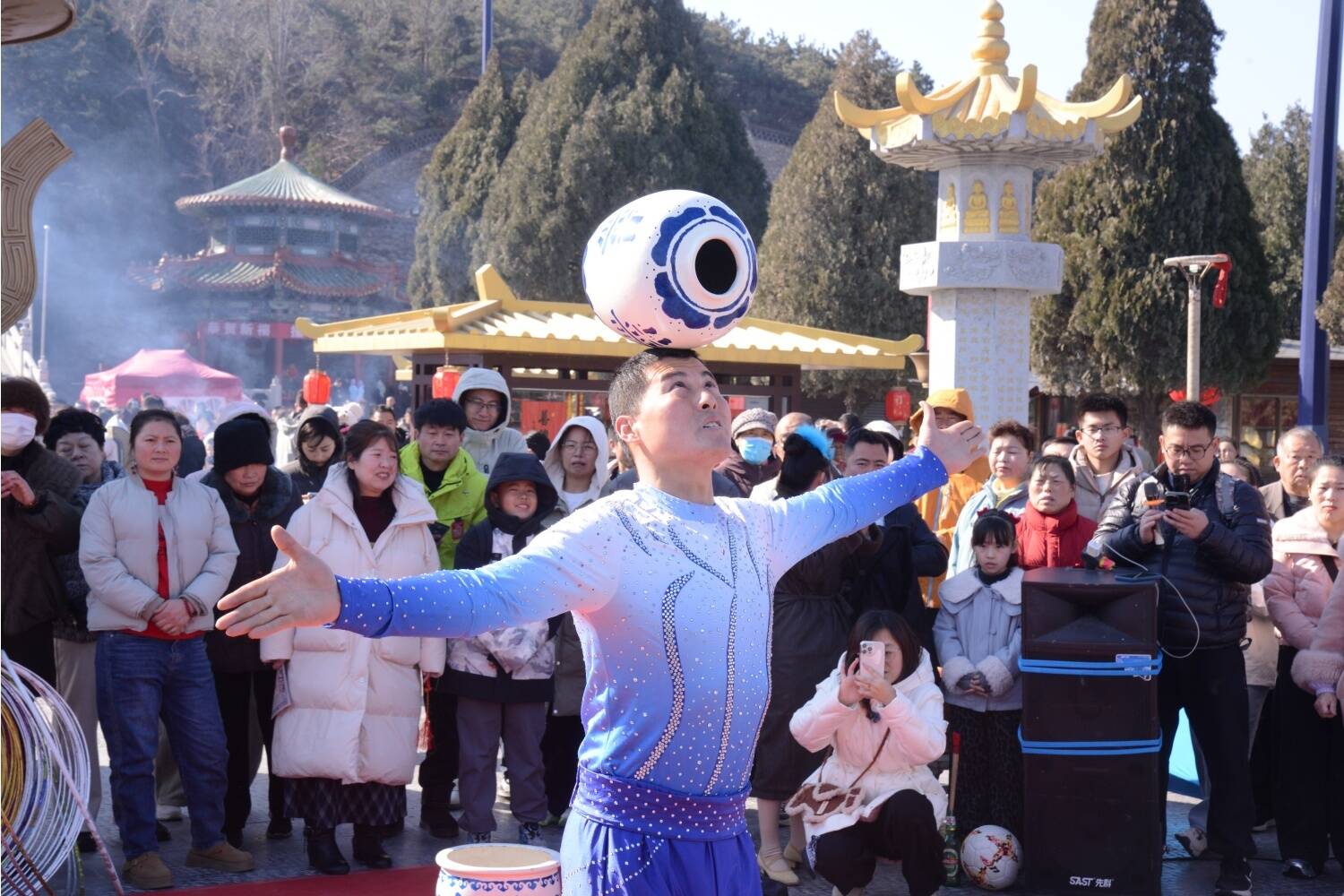 曲艺杂耍表演更是让人目不暇接,演员们凭借着精湛的技艺,将各种绝活展现得淋漓尽致,引得观众们连连叫好,现场掌声、欢呼声此起彼伏。