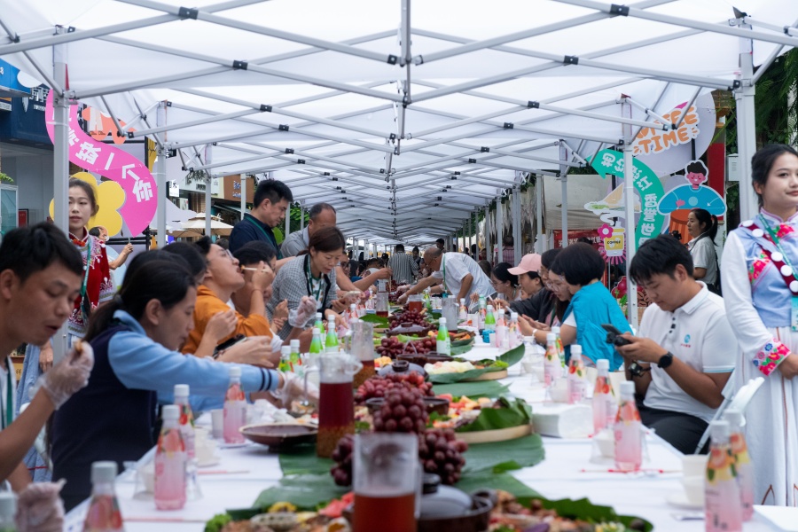 当天,还举办了独具怒江民族风情的“千人手抓饭”活动。活动现场,数十张长桌沿着怒江岸边依次铺开,桌上的手抓饭、草果炖鸡、咖啡甜品等特色美食,满是怒江的风味。游客与当地群众围坐在一起,在欢声笑语中交流见闻,既品尝了峡谷味道,也感受了泸水的热情。